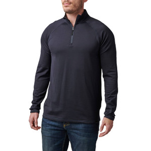 The 5.11 Stratos ¼ Zip Pullover in dark navy is a mid-layer garment for cold temperatures and is constructed from a durable polyester and elastane blend for a functional stretch. This quarter zip pullover has integrated anti-odor material that wicks away moisture to keep you warm and dry during your training sessions or backcountry trips. The front zip closure has a chin guard for additional protection while the brushed tricot-lined collar and raglan sleeves provide the comfort you need to keep up with your demanding lifestyle.