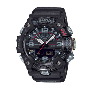 This watch is designed and engineered to withstand environments. The case is made of high-rigidity carbon material to protect against damage and deformation due to impact and other rough treatment, while metal button pipes ensure a tighter seal against the external environment. A filter further protects against the invasion of mud, for the high level of dust and mud resistance required when in severe environments. In addition, the dual back cover consists of a stainless steel panel back and an outer cover made of shock resistant fine resin embedded with glass fibers.