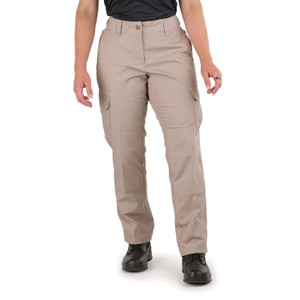 The Galls Pro Women’s G-Tac Tactical Pants feature a hidden elastic waistband with D-rings, rise adjustments for a better fit, a gusseted crotch for durability, and slanted cargo pockets for easy gear access.