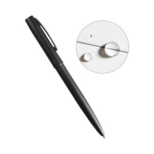 Crafted from tough, powder-coated brass with a textured flat black finish, it features a handy pocket clip for easy carrying. The black ink, with a point size of .9mm, flows smoothly through a proprietary pressurized cartridge that ensures uninterrupted writing, even in extremely wet conditions. Not only does it write through water, but this all-weather pen can tackle sweat, grease, and mud without clumping or smearing. It's the perfect companion for adventurers, field professionals, and anyone who needs a reliable writing tool in challenging environments.