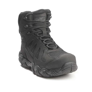 Nothing slows you down—bad weather, tough jobs, or difficult terrain. These lightweight, waterproof hikers take you where you need to go with the comfort of an athletic shoe and the grip of a quality uniform boot. These tactical side zip boots also meet ASTM F2913 Slip Test Standards and are bloodborne pathogen resistant.